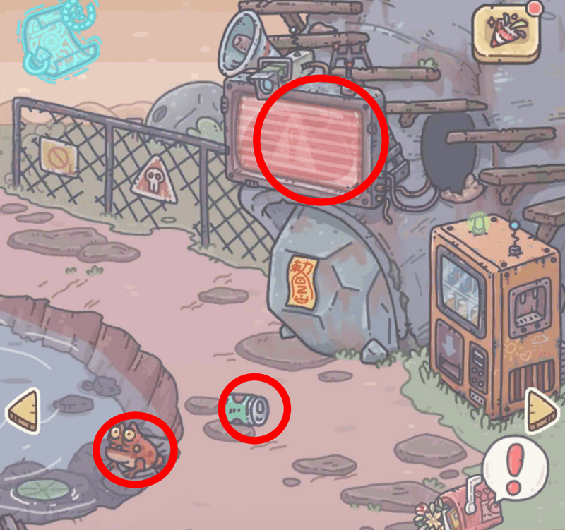 テレビを調べることでデイリーミッションを確認することができます。毎日必ずチェックしましょう。また箱と同様にカエルや空き缶も調べることができます。カエルはペチュ美と会話後、祈願ガチャが引けるようになります。
