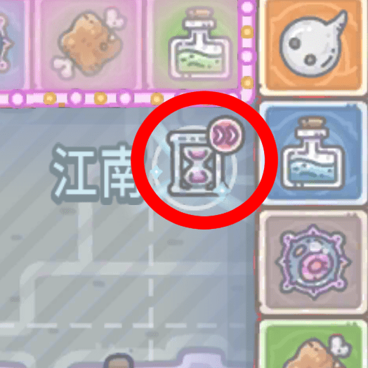 そのままゲームを続ける場合は画面左上にある「砂時計マーク(探索加速)」で放置時間を時短しましょう。探索加速が尽きるまで時短が可能です。
